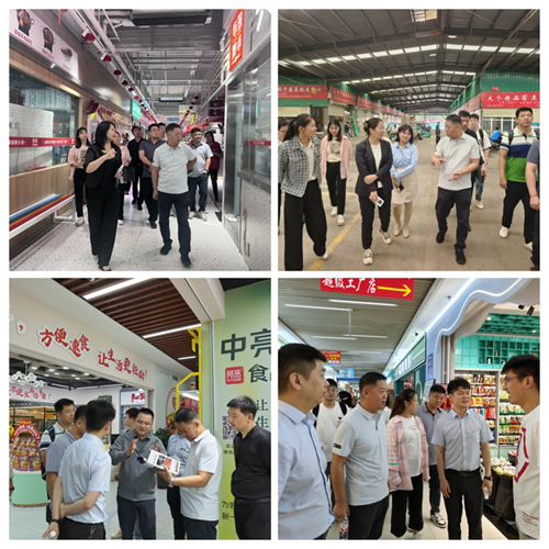 上午,考察團一行先后前往市投集市未來路市場、十八里河農產品配送中心以及鄭州百榮世貿商城 D 座進行實地參觀調研,認真聽取了市場經營情況介紹,并就運營模式、特色優勢以及發展趨勢與項目負責人進行詳細交流。