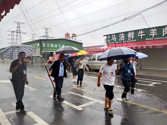 新街巷公司工作人員冒著大雨深入市場,對(duì)下水道排水情況進(jìn)行了現(xiàn)場查看,對(duì)高壓塔線下經(jīng)營商戶人員進(jìn)行了引導(dǎo)疏散,對(duì)屋頂樓面、排水管道以及場外周邊安全防御進(jìn)行了全面排查,對(duì)發(fā)現(xiàn)的問題馬上整改,及時(shí)消除安全隱患,對(duì)因降雨、積水產(chǎn)生的垃圾及時(shí)清理,避免影響道路通行安全和堵塞排水系統(tǒng)造成內(nèi)澇。同時(shí)工作人員深入各商戶,檢查因大雨天氣造成的電線濕水、電器進(jìn)水等情況,防止因大雨沖刷造成漏電現(xiàn)象,提醒市場商戶做好防汛應(yīng)對(duì)措施和安全防范工作,確保自身安全,并做好市場保供穩(wěn)價(jià)。