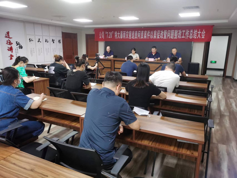 ? ? 8月19日,鄭州市市場發(fā)展投資有限公司召開“7·20”特大暴雨災(zāi)害追責(zé)問責(zé)案件以案促改暨問題整改工作總結(jié)大會,教育引導(dǎo)廣大黨員干部更好地把思想和行動統(tǒng)一到習(xí)近平總書記重要講話和指示精神上來,切實把教訓(xùn)變教材、把教材變方案、把方案變行動,推動中央、省委、市委各項整改要求件件落實、條條落地、事事見效。公司領(lǐng)導(dǎo)趙潔、龐曉冰、孫濤、逯衛(wèi)川出席,公司本部全體人員、各子公司人員參加會議。